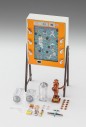 ゲーム台前面パネル、駄菓子パッケージなどのシールが付属します。