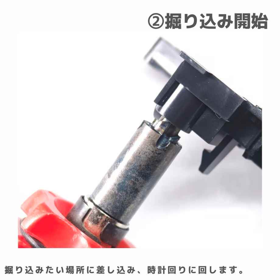 1段目が5.6mm、2段目が6.1mmの二段階設計により、ホリコムンダーSPシリーズの中心を正確にガイドする穴を作成できます。