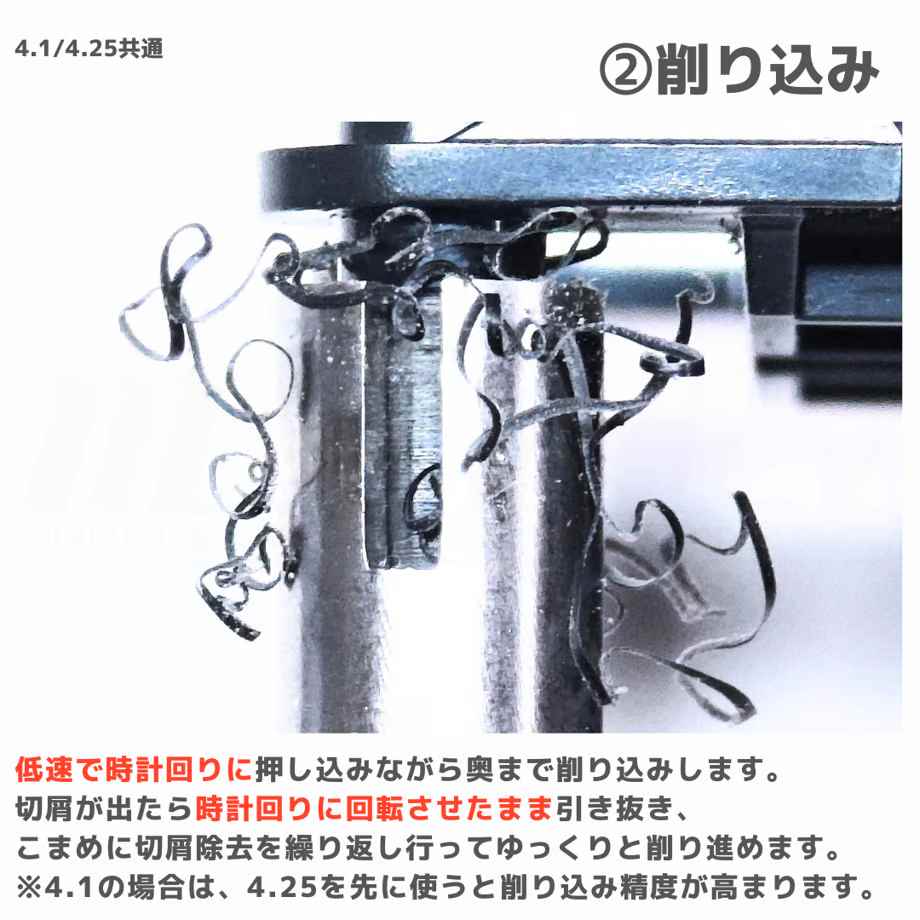 MSシャーシのフレキ加工をするために必要な削り込み加工ができるビットです。
