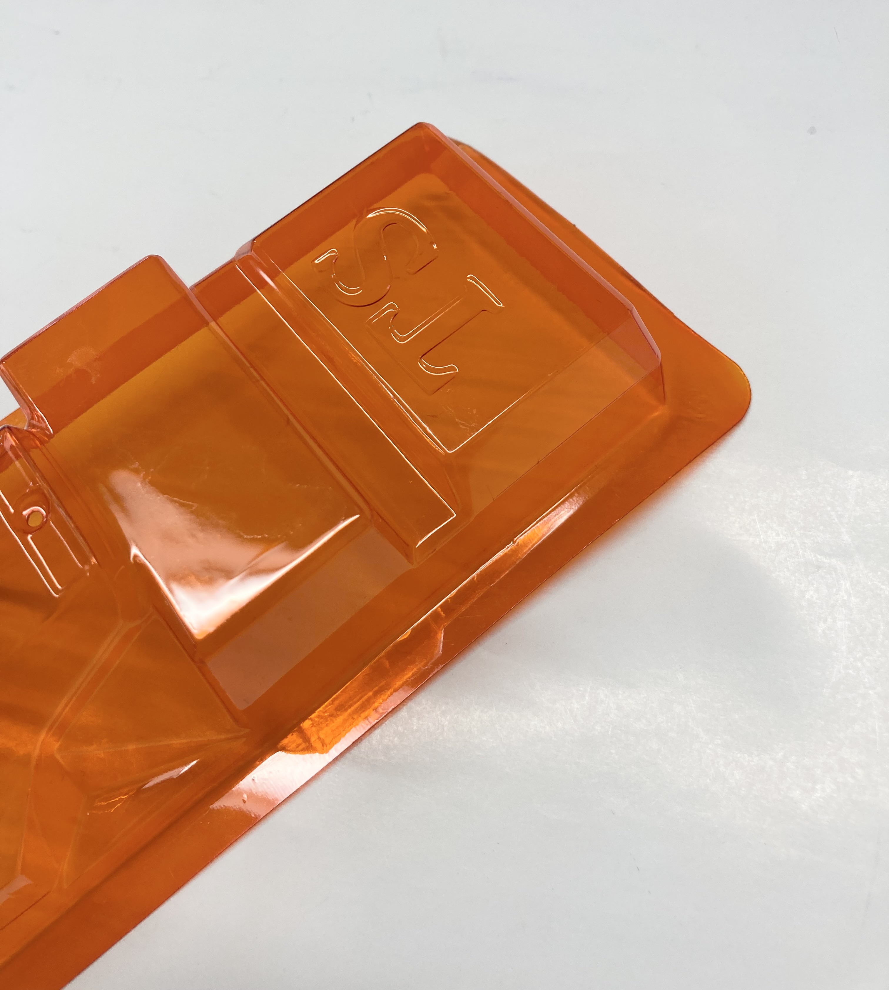 ショックに強く壊れにくいポリカーボネート製のボディです。多くのクリヤーボディの中でも軽量で、前面投影面積が小さいサンダーショットJr.だけに、効果は抜群。加速性能や最高速度がアップし、低重心化で走行安定性も高まります。レースで主流の軽量化改造に最適。クリヤーボディ専用の透明ステッカーはもちろん、ボディフックやキャッチマウント(D部品)も付いています。