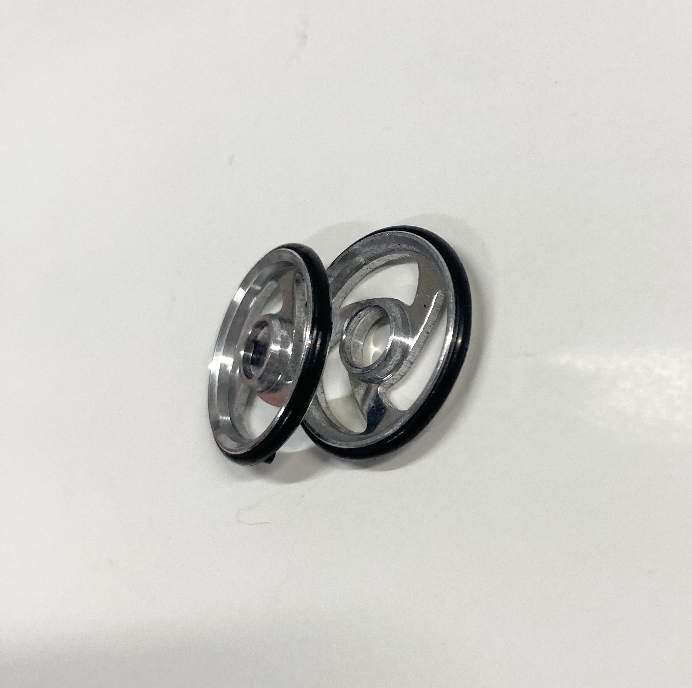 軽くて強いアルミ製エアロスポークにプラスチックリングを組み付けた高速仕様の大径ローラーです。ボールベアリングを内臓してスムーズな回転を生み出します
