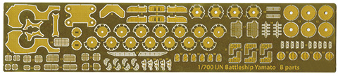 エッチングパーツには梯子、ラッタル、方位測定器、信号灯支柱、羅針艦橋の窓枠、21号電探などを収録。