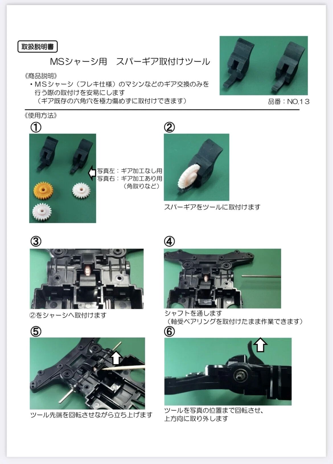 【商品紹介】<スパーギア交換ツール>・MSフレキシャーシのギア交換時に、 ギア六角穴を痛めずに素早く作業できます
