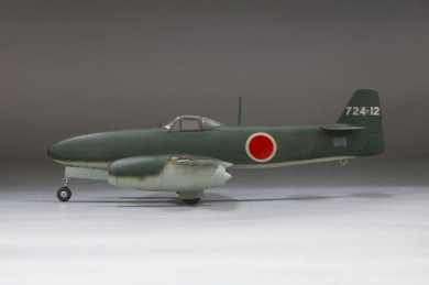 当時すでにドイツ空軍で実用化されていたMe262ジェット戦闘機の技術資料を参考に、橘花は日本初のジェット機として昭和19年7月より設計が開始されました。海軍からの計画要求がなかなか決定せず、また資材不足や搭載エンジンの変更によって設計変更が繰り返されたため、一号機の初飛行は20年8月7日となります。日本で初のジェット機による飛行は成功しましたが、2度目の飛行となるはずの4日後の試験では離昇に失敗。機体は破損し、そのまま終戦を迎えました。
