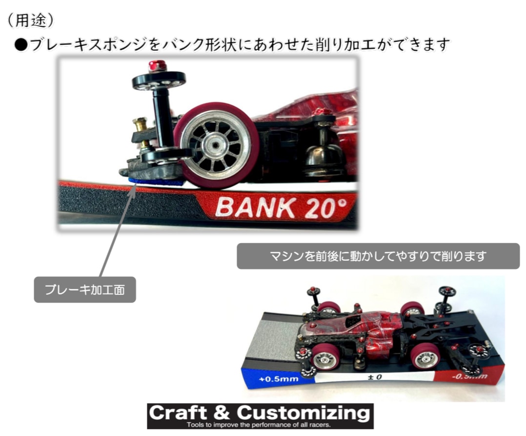 ご覧いただきありがとうございます。 【ご案内】 こちらは、各種単品販売ページになります。 バンク20°とバンク30°の2 種類セットでの購入はお安くお買い求めいただけますので、 当ショップの商品一覧よりご確認ください。 ●各種単品 ◀️このページ ●2種類セット 【セット品】 3レーンセクション用 ブレーキメーカー 《NO.119,120》 【商品紹介】 《3レーンセクション用 ブレーキメーカー》 ブレーキスポンジをバンク形状に限りなく近づけられるようにできるツールです。 ・前後のブレーキスポンジ製作において、やすり でスポンジを削っていく加工になります ・20°バンクセクション形状をベースにタイヤ ホイールをガイドにして加工できるようにして いるため、マシン個々にあわせてブレーキを きれいに正確に仕上げることができます ・加工面は、20°バンク面にたいして、 +0.5mm、±0mm、-0.5mmの段差3パターン を設定しており、使用するやすり厚さや、 マシンタイヤホイール径、接着テープの 貼り増しの工夫で細かくブレーキ高さを 調整できるようになっています ・チューンマシン、オープンマシンやストックク ラスなどの幅広いマシンのブレーキ製作が 簡単になります ・右利き、左利き兼用仕様 <内容物> ・ブレーキ加工ツール本体 《NO.119またはNo.120》 1個 計 1点 <仕様> ・本体 材質 : ABS樹脂 <表示価格> ・一般販売価格1,350円(税抜)に 10%消費税を加算しております。 【注意事項】 <発送について> ・3Dプリント製法による、面のざらつきや 小キズがつきますが品質検査を実施の上、 使用と機能に問題ない状態で出荷させて いただいております。 製品到着時の初期不良や使用時のトラブルによる 早期破損などございましたら、取引メッセージ内 にて無償対応させていただきます。 <その他> ・品質向上のため予告なく仕様変更をする場合が ございますので、ご了承ください。 ・スムーズで気持ちの良い取引を心がけて、 対応させていただきます。 よろしくお願いします。 セイCHAN@クラフト&カスタマイジング #ミニ四駆 #Craft&Customizing #加工ツール #3レーン #ブレーキ加工ツール #ブレーキ #バンクセクション #20°バンク #30°バンク