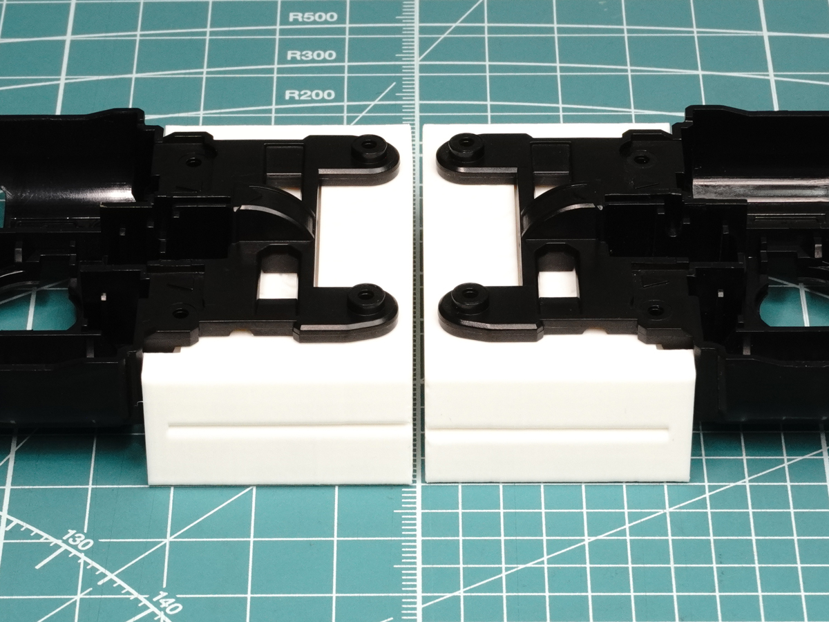 MSシャーシ/フレキシブル改造のセンターシャーシ加工において、ユニットをストロークさせるために干渉する部位をカットする治具です。