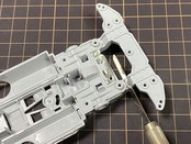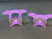 お辞儀防止ステー3種(コの字型・前後/全面タイプ)の型を基準に、”リアブレーキステー”の内側を埋める際に製作するステーR部輪郭、その他キャッチャーダンパーの逃がし穴の確認。
