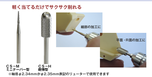 トルクの弱いリューターや回転数の低いホビーリューターでも効果を発揮します。