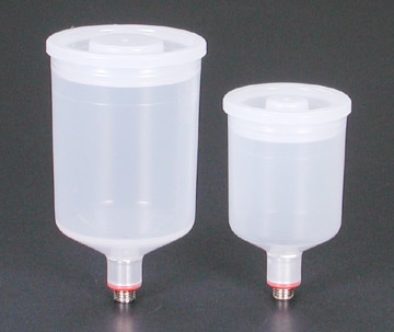 ・樹脂製の塗料カップは容量17ccと40ccの2種類をセット。HGシリーズの各エアーブラシにも取り付けられます。