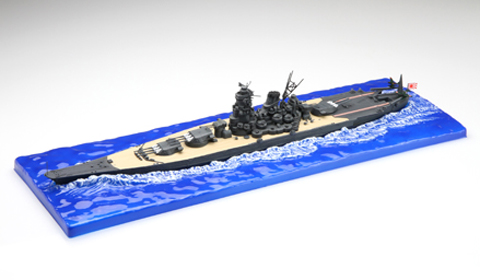 帝国海軍の戦艦として最後に就役し、世界最強を誇った「戦艦 武蔵」を再現、対空兵装強化したレイテ沖海戦での最後の姿を再現。ポリカーボネート製の波ベース付き。