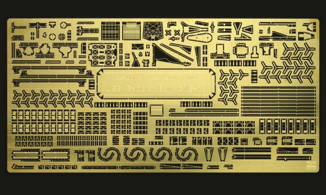 艦橋周りマスト・ブーム・レーダー・着艦用制動索・舷梯・艦載機プロペラなどのディテールアップが可能な真鍮製エッチングです。