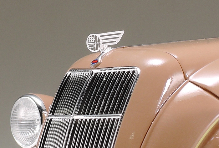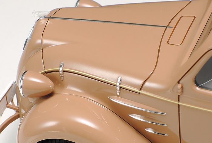 ●丸みを帯びたフロントグリルや、滑らかな曲線を描く前後のフェンダーなど、流線型と呼ばれた優雅な姿をリアルに再現。