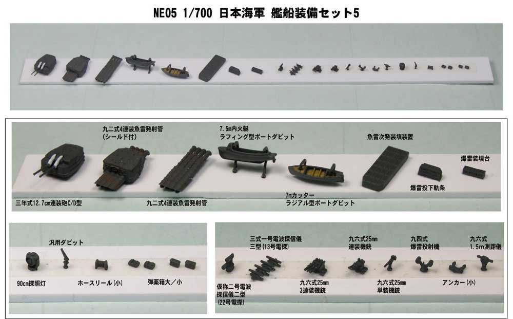 ・キットは、従来の陽炎型駆逐艦に、今回付属している新装備セットNE05「1/700 日本海軍 新・艦船装備セット 5」を使用することにより、より精密な陽炎型を製作することが出来ます。