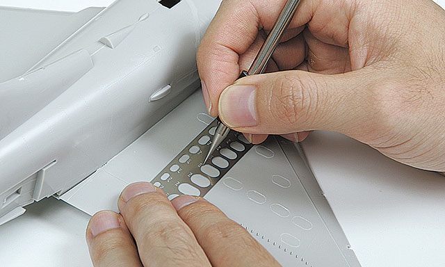 模型専用の金属製けがき針です。 プラスチック表面に、 シャープなスジ彫り線を彫ることができます。 自由な方向に動き、テンプレートと併用して 直線と曲線を彫ることも可能です。