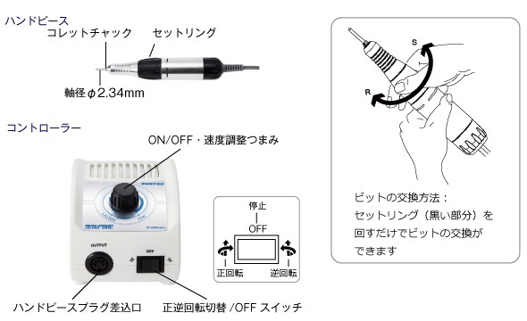 上位機種にのみ採用されていたセットリングを装備。セットリングを回すだけでスムーズにビットの交換が可能。
