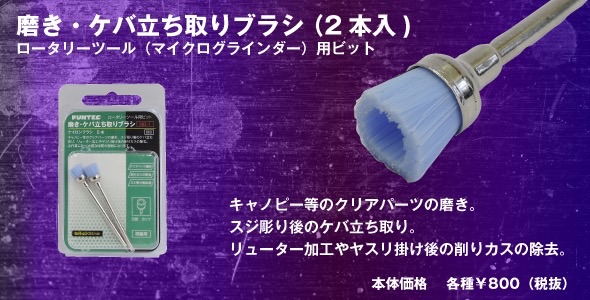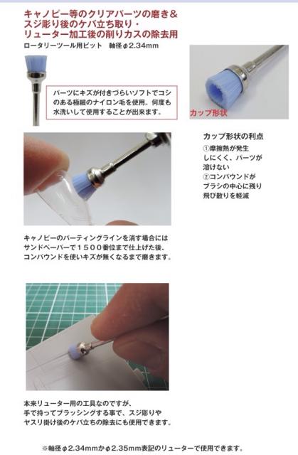 磨き ケバ立ち取りブラシ パーツにキズが付きづらいソフトでコシのある極細のナイロン毛を使用。何度も水洗いして使用することが出来ます。