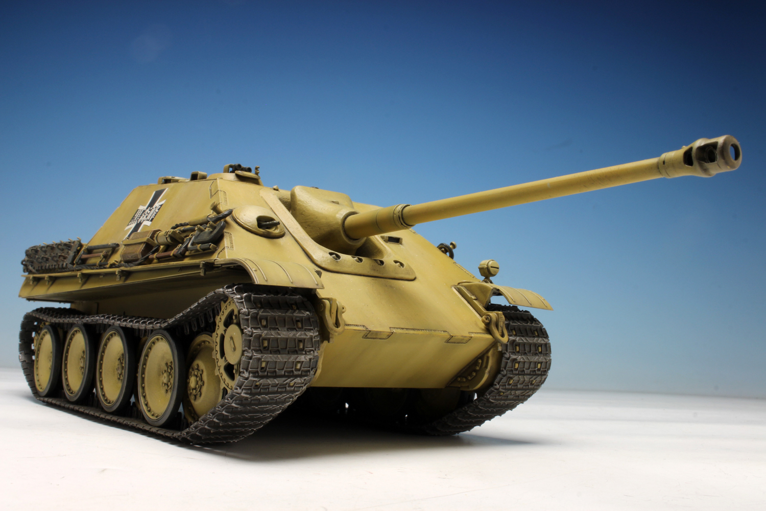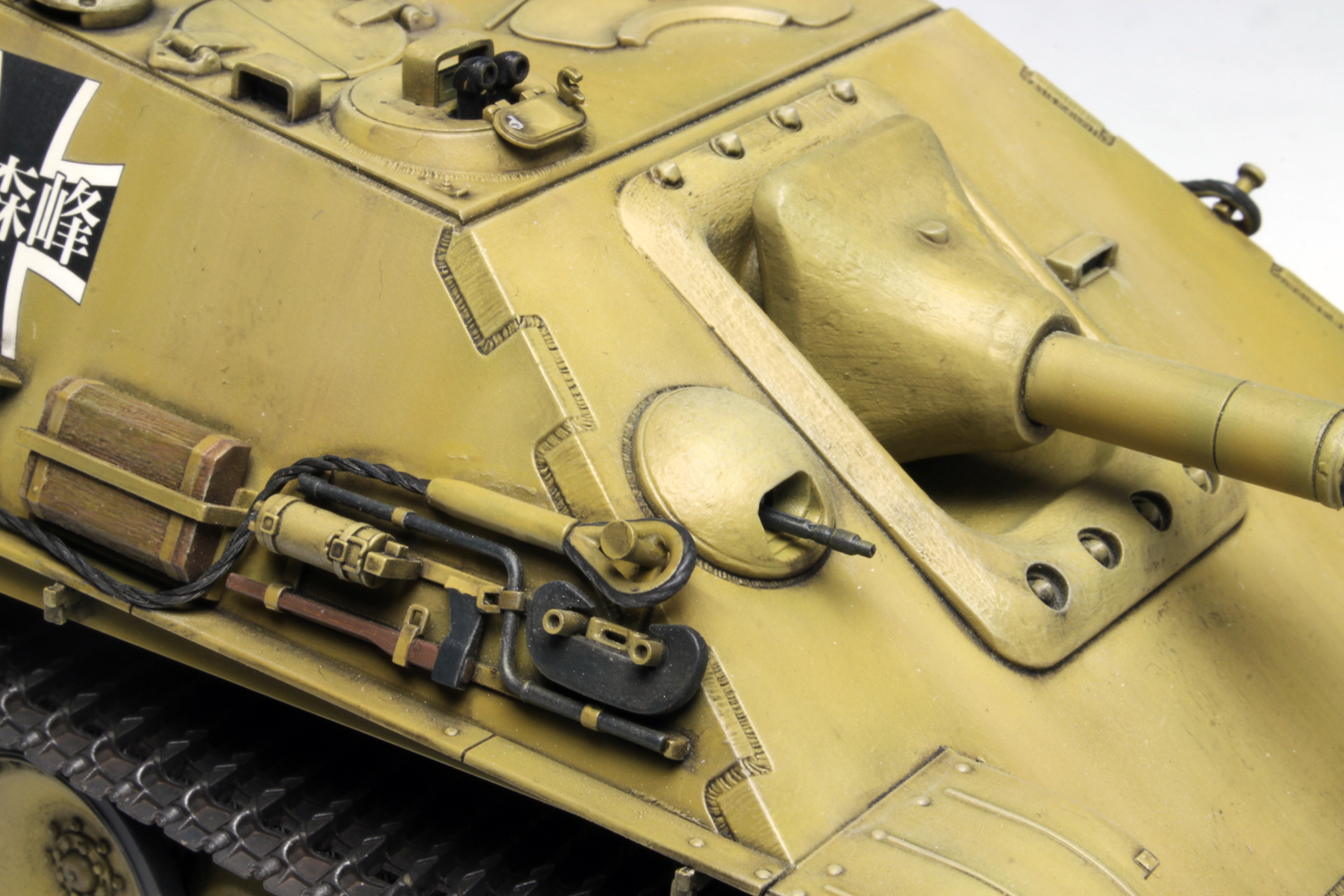 第二次大戦最良戦車のひとつとされるパンターの車体をベースに、ティーガーIIと同じ強力な71口径8.8センチ砲を搭載した独特のスタイルを1/35スケールでリアルにモデル化。