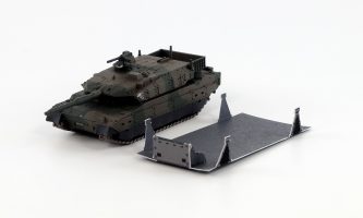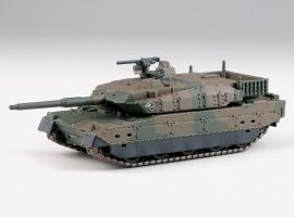 ・付属の10式戦車(1/144スケール/ABS製)は2012年1月に自衛隊へ引き渡された量産1号車で、複雑な形状の砲塔や長いゴム製のサイドスカートなど、本車の特徴を細部まで精密に再現しています。
