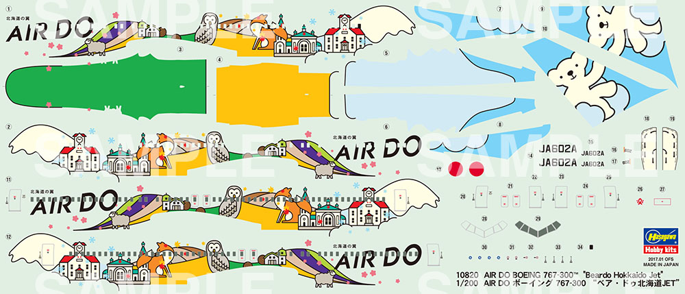 春・夏、秋・冬の北海道各地の風景、 垂直尾翼には人気のベア・ドゥが描かれた賑やかなデザインが魅力です。