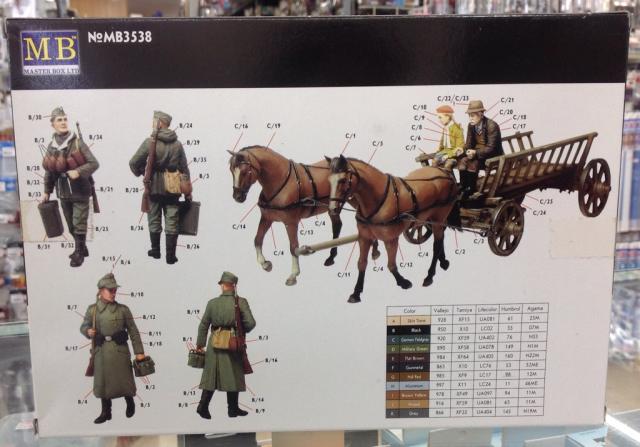 マスターボックス MB3538 1944年欧州・独兵2体+農民2体+農馬2頭&馬車