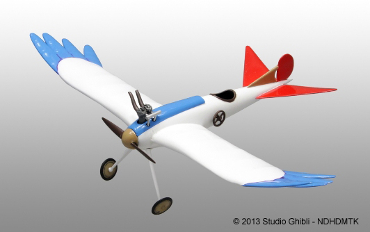 オリジナルの飛行機。 キットは接着剤不要で組み立て可能。またランナーの成形色を4色として、細部を僅かに塗装するだけで劇中のイメージを再現できます。