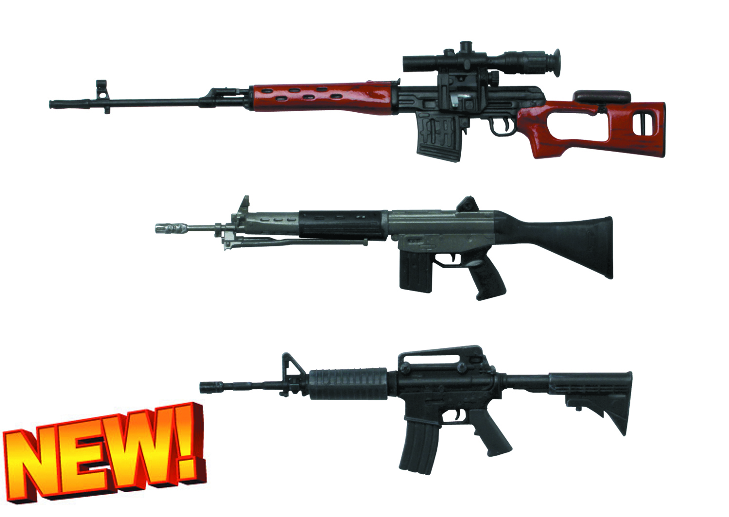 世界の名だたるウエポンをかつてないほど精密、精巧にスケールダウンしたプラモデルキットシリーズ第2弾が登場!!スライド金型を多用し、パーツ数も厳選されたプラッツオリジナルの自信作です!今回は第1弾のハンドガンに続き、完全新金型でライフル3種をラインナップ。 1989年に自衛隊で制式化され、海上保安庁、警察の特殊部隊(SAT)において制式採用の国産アサルトライフル『89式小銃』、ソビエト連邦が開発した名狙撃銃『SVD&PSO-1』、米軍の各部隊に多数配備された『M4A1』の3種をモデル化。