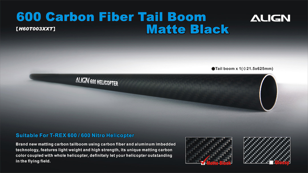 H60T003XXW 600カーボンファイバーテールブームマットブラック