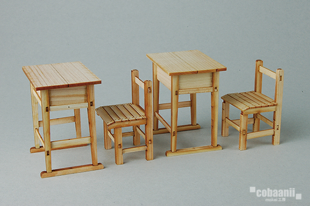 cobaanii mokei工房 OY-001 昭和の学校 ひのきの机と椅子