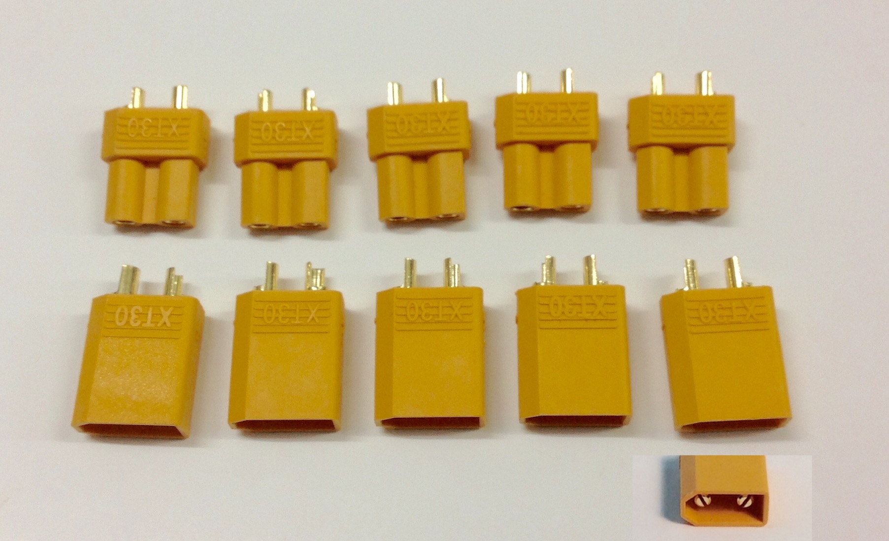 XT30コネクター (オス) 10個入 シリコンケーブルは18AWGまでを使用して下さい。 バッテリー側にメス、ESC側にオスを取り付けてご使用下さい。 ハンダもとても付けやすくなってます。